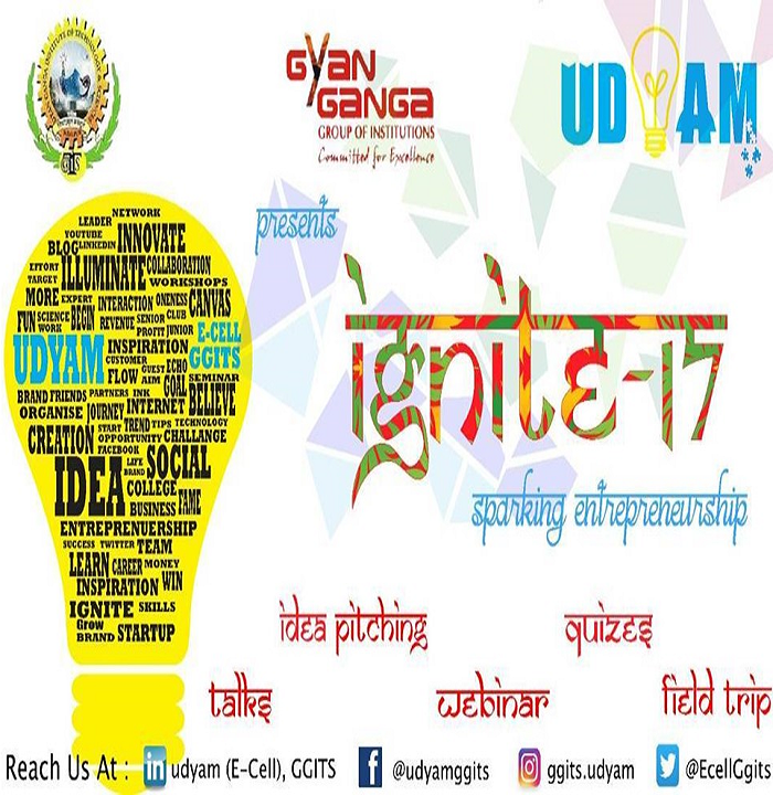 UDYAM , The Entrepreneurship Cell at GGITS pursues the endeavour of sensitizing and fostering entrepreneurship amongst the students at college. E-Cell hosts various workshops, speaker sessions, innovative games, competitions for aspiring entrepreneurs, and support them by providing necessary resources such as seed funding, mentoring consultancy, and networking.